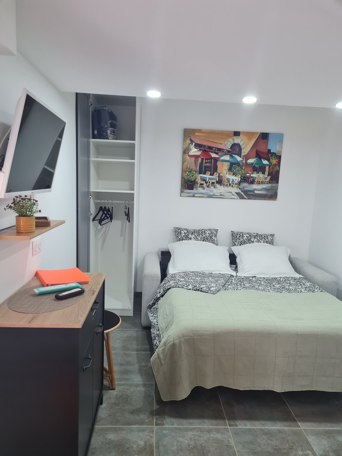 Logement parfaitement situé offre un accès facile à toutes commodités. A5 minutes à pieds vous trouverez supermarché Auchan, station essence, lavage auto, fleuriste, coiffeur, Macdo, restaurants, pharmacie... Proche de Châteauneuf du Pape, du festival d'Avignon, des chorégies d'Orange, Barjac, Pont du Gard. Logement de 27 m2 composé d'une cuisine équipée, un coin repas, 1 SDB 1clic clac et 1 lit superposé. Une place de parking devant le logement vous est destinée, terrasse extérieure de 16 m2.