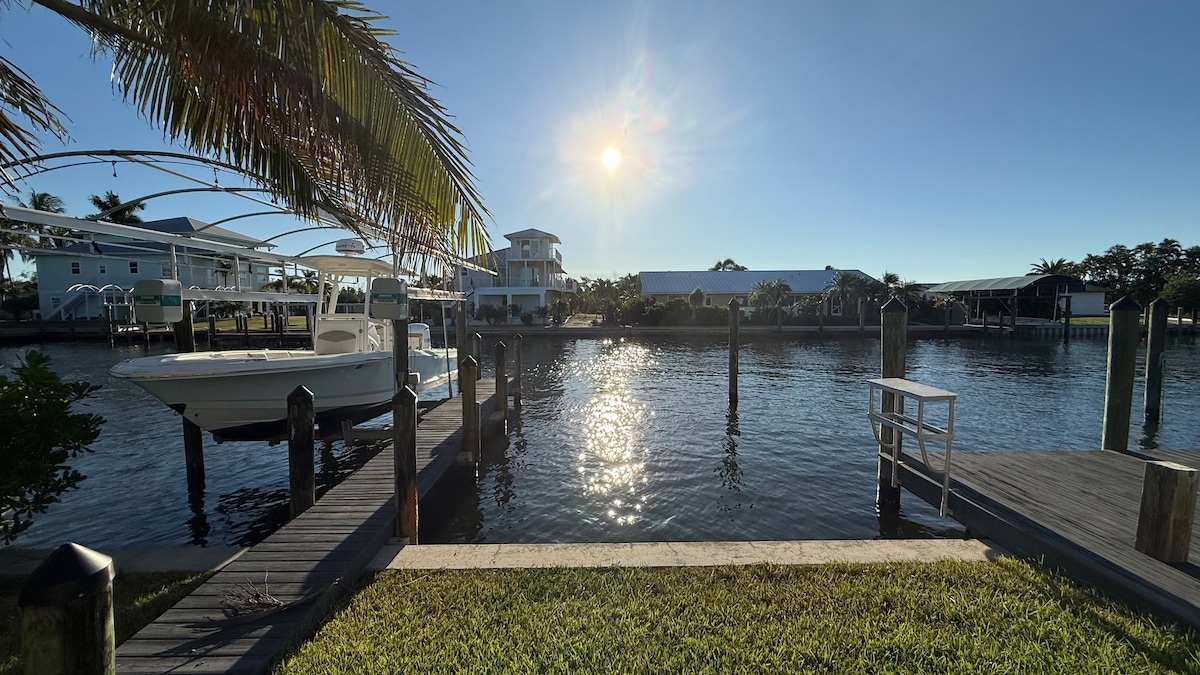 Water front, bring your boat! . Sit on tiki deck and watch the sunrise with your first cup of coffee or the dolphins. Kayak through the canal ways of Pine Island. Book a fun kayak,canoe tour or rent a golf cart or set up a fishing excursion. Buy all your fresh Catch of the Day at Island Crab Seafood Mkt. Or fish off of our dock out front. Ft Myer & Sanibel beach is hour drive away. No parties or pets. Dock & open water access out front. Adults only due to water front