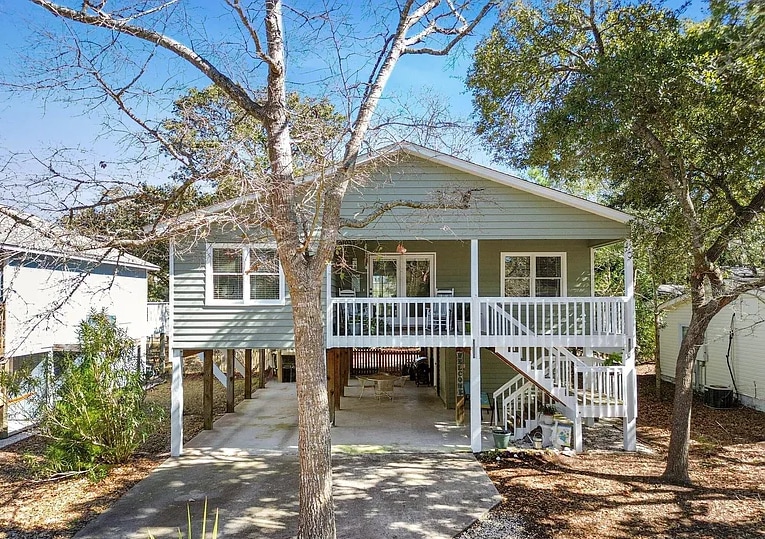 Beautiful Oak Island, NC home nestled in between the beach, Davis Canal and intracoastal waterway is centrally located to kayaking accessibility, paddle boarding, quite walks on the beach through the scenic beach access. The island is filled with local restaurants that never disappoint. The home is cozy with a large front porch with rocking chairs and a side screened porch with gas grill. Beach is just a short walk away over the scenic walkway. Located close to everything! Don’t miss this!