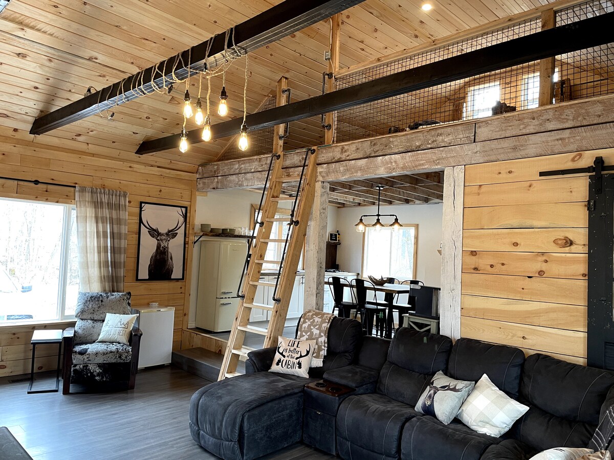 Les voyageurs ont leur propre studio confortable, qui est privé et situé au rez-de-chaussée avec leur propre entrée. Elle ne comprend pas toute la cabane. Dispose d'une kitchenette avec barbecue à l'extérieur. La cabane en rondins est juste en face du parc provincial Petroglyphs (de mai à octobre) ; cependant, vous pouvez faire de la randonnée toute l'année, même avec les portes fermées, et également en bas de la route vers Stoney Lake avec un accès complet à une plage publique (mai-octobre). Escapade parfaite à tout moment de l'année.