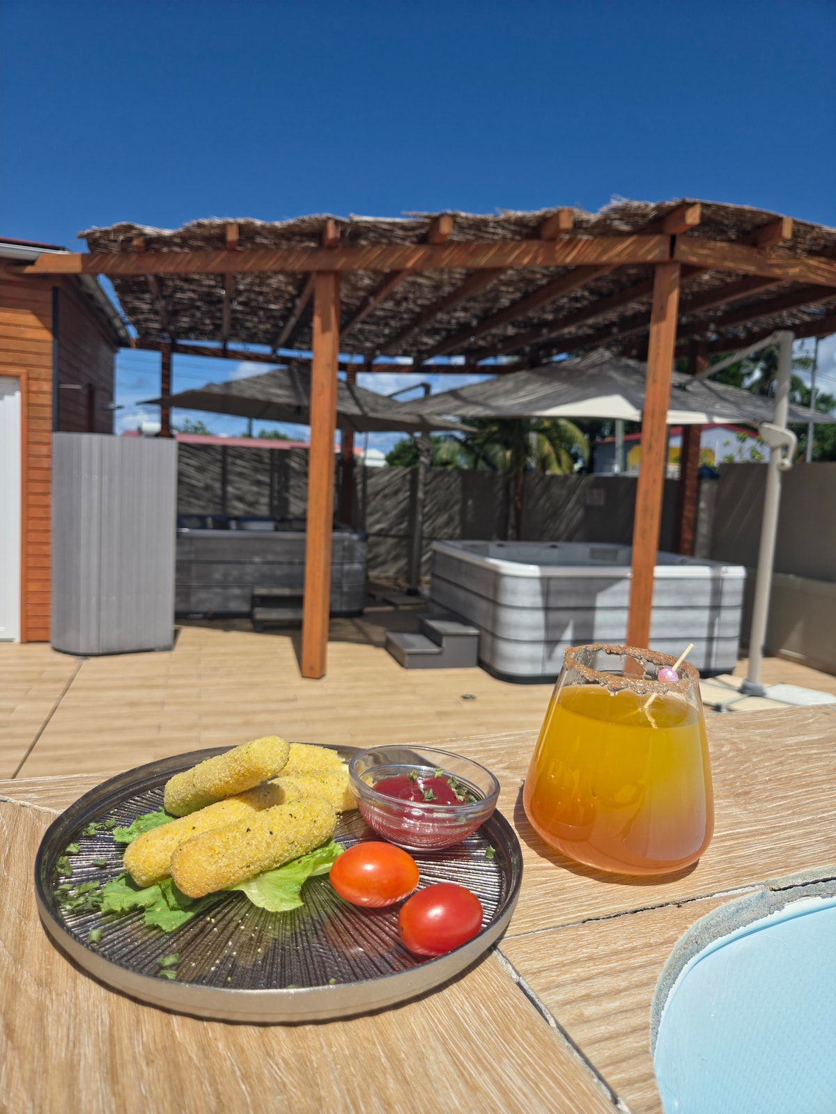 Bienvenue dans notre havre de paix, conçu avec amour pour votre bien-être. Notre objectif est de vous offrir une expérience unique, où détente et confort sont les maîtres mots. Profitez d'un fauteuil massant de qualité, d'un jacuzzi relaxant et d'un lit confortable, l'idéal pour prendre soin de vous ou vous détendre après une journée de découverte de notre magnifique île, la Guadeloupe. Et pour commencer vos journées, un délicieux petit-déjeuner, vous sera livré à partir de 9h en option.
