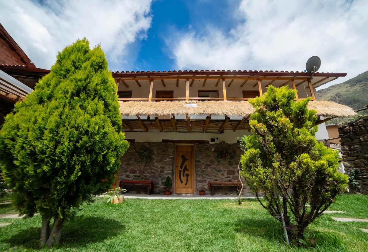 La casa tiene una terraza con vistas a las montañas y Fortaleza de Ollantaytambo, tiene 01 habitación con Cama Queen , 01 habitación Twin , 01 habitación con Cama King ideales para tener un buen descanso y pasar su tiempo en Ollantaytambo, tiene todo lo que necesita para su comodidad como baño privado con agua caliente las 24 horas La Casa cuenta con sala, comedor y comedor completamente amoblado, un escritorio para quienes llegan en plan de trabajo, buen Internet, ubicado en el Pueblo Inka.
