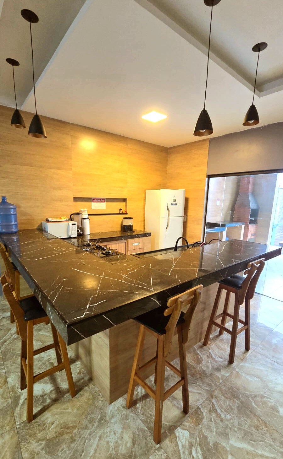 250 m² de maison et de confort au cœur de Praia do Atalaia à Salinas-PA. Grande maison neuve, piscine avec jacuzzi, espace gourmet avec barbecue, 3 chambres spacieuses, dont 2 suites, Split dans toutes les chambres, 3 salles de bains, garages privés, Wi-Fi puissant, TV smart, lits, lits superposés, canapé-lit et hamacs. Cuisine équipée avec ustensiles de cuisine complets, grill, micro-ondes, réfrigérateur. Surveillance électronique et sécurité 24h/24. Situé sur la plage d'Atalaia à Salinópolis Vale do Sal