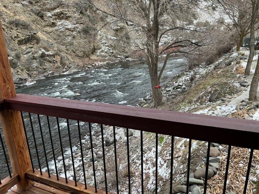 Nichée près de Goldbug Hot Springs, notre suite d'une chambre est une escapade parfaite. Nous sommes à distance de marche du point de départ du sentier Goldbug ! La suite dispose d'un lit King Size flottant unique avec un éclairage d'ambiance pour un sommeil réparateur. La kitchenette pittoresque est équipée pour la préparation de repas de base, complétée par une machine à café et un coin repas patio avec vue sur la montagne. Profitez du confort moderne comme le WiFi haut débit, la télévision à écran plat et le chauffage/climatisation réglable. Il s'agit d'un logement de style hôtelier qui partage un mur avec un autre logement.