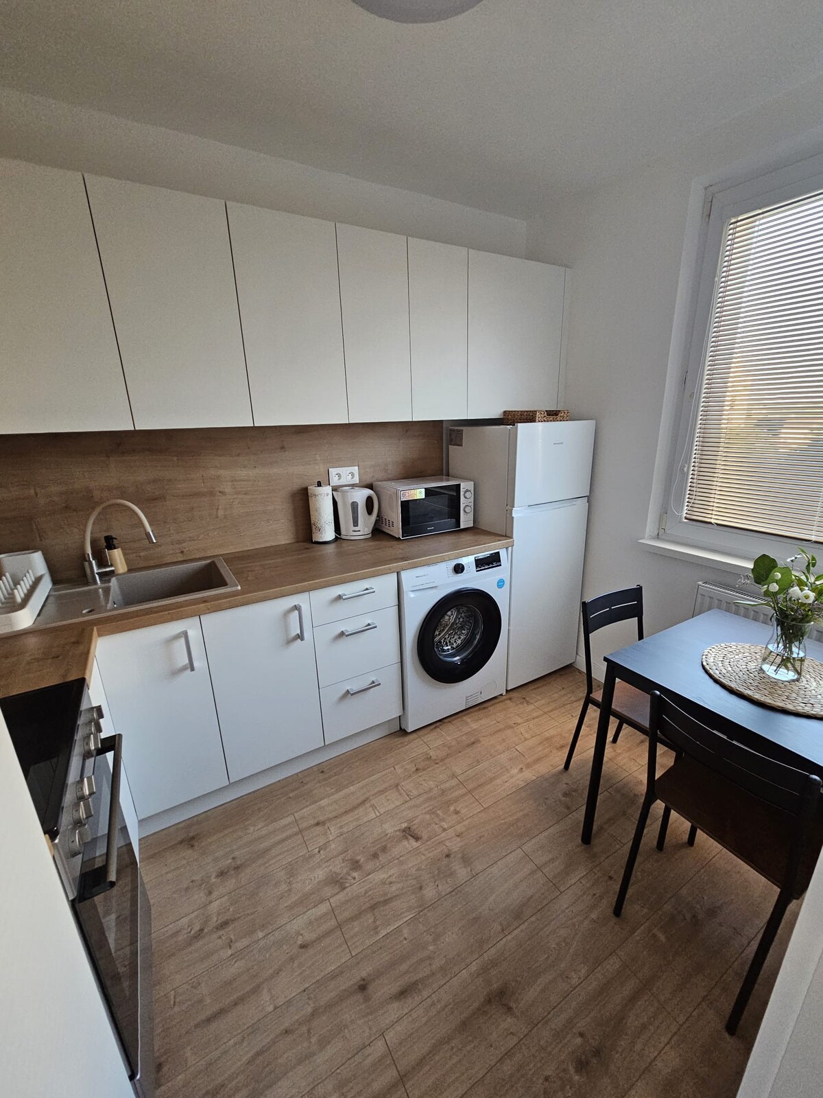 Appartement confortable de 60 m2 situé dans un endroit calme au centre de Šamorín. Il y a 1 chambre avec un lit double, une table à manger pour 4 personnes. Cuisine entièrement équipée, salle de bain avec baignoire et toilettes séparées. Le salon est équipé d’une armoire, d’un petit bureau, par exemple pour le télétravail, d’un canapé confortable et d’un petit balcon. Il y a aussi une machine à laver dans l’appartement.