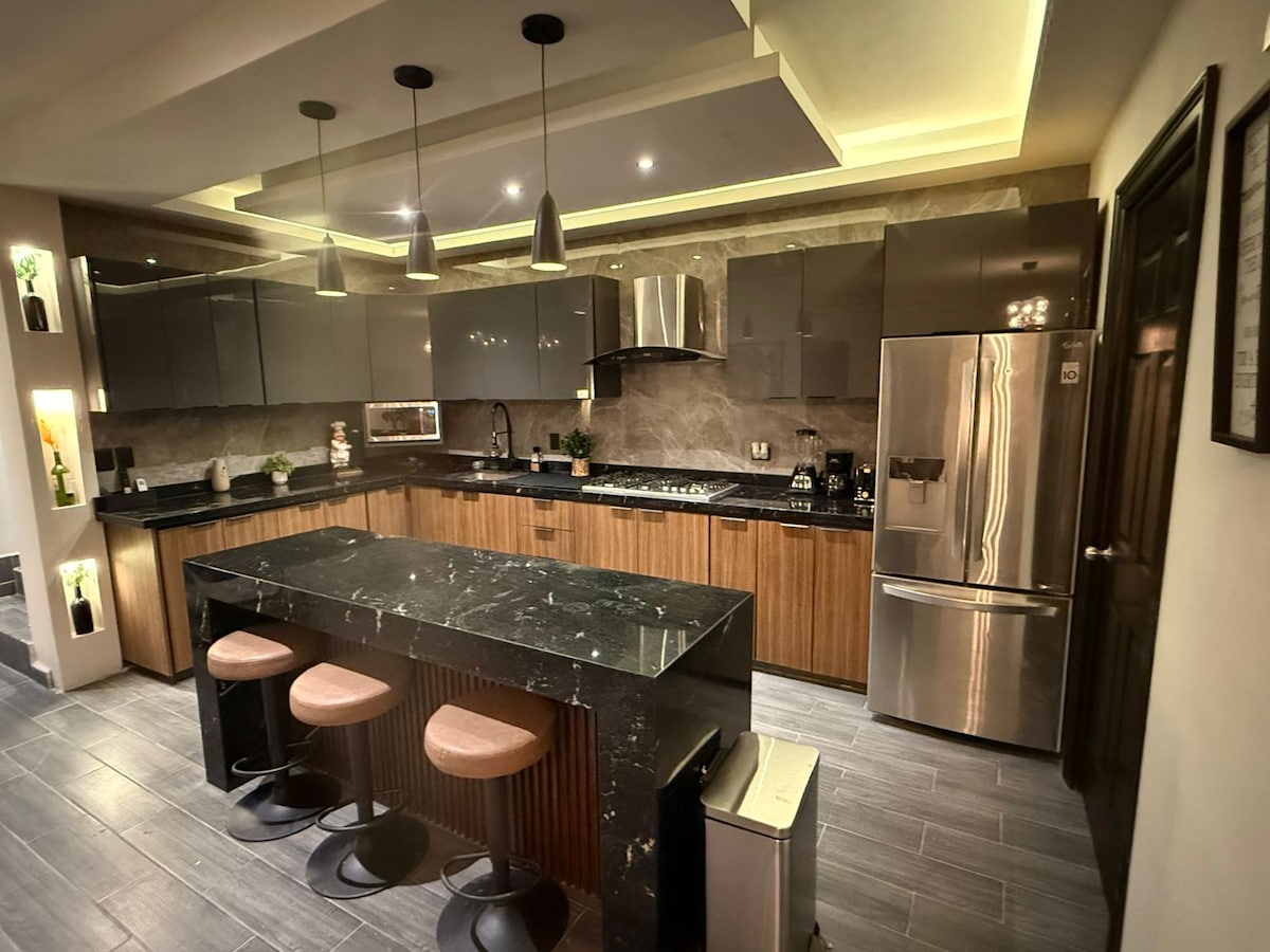 Esta hermosa residencia esta ubicada muy cerca de varios centros comerciales. Cuenta con 3 habitaciones y 5 camas! (Dos KS y 3 matrimoniales) y un sofá cama! Todas las habitaciones y sala de juegos cuentan con smart tv para mejorar tu estadía en nuestra casa! La mesa de billar se puede utilizar por mayores y en el caso que niños jueguen debe de ser supervisado por adultos para mantenerla en buen estado (No se aceptan mascotas)
