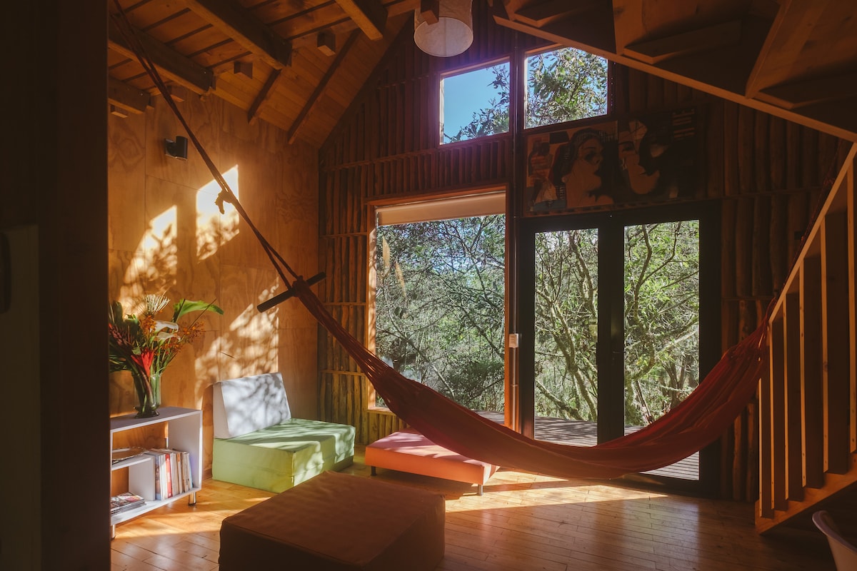 Un endroit pour être en contact avec la nature depuis le confort. Vivez une expérience de repos et de tranquillité dans un espace qui s'ouvre entre les arbres. Profitez d'un paysage changeant entre brouillard, pluie et soleil paisible. Santa Elena est une zone rurale de montagne à la périphérie de Medellín à 19 km du centre-ville ou à 13 km de l'aéroport JMC. Le chalet est situé à proximité des lignes de bus, des restaurants, des supérettes, des sentiers dans la forêt et des lieux touristiques.