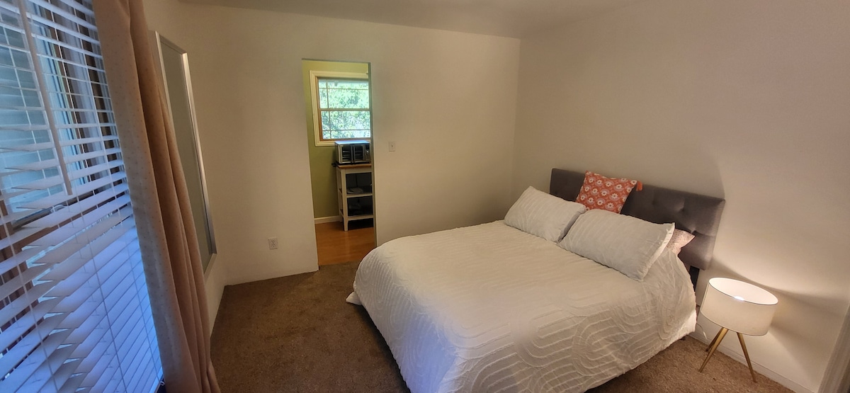 Cette chambre d'entrée séparée s'ouvre sur un magnifique jardin d'un acre avec piscine, jacuzzi, télévision par câble/sans fil et parking. Nous sommes juste à côté de 280 et Woodside Rd., 4 miles de Stanford. C'est calme et paisible et nous sommes des hôtes sans défense. Il n'y a pas d'accès à la maison et la chambre n'a pas de frigidaire, de micro-ondes ni de vaisselle. Nous sommes aménagés pour des clients indépendants qui veulent aller et venir seuls et profiter des restaurants locaux à Woodside, Palo Alto ou RWC. Veuillez noter la très courte porte d'entrée.