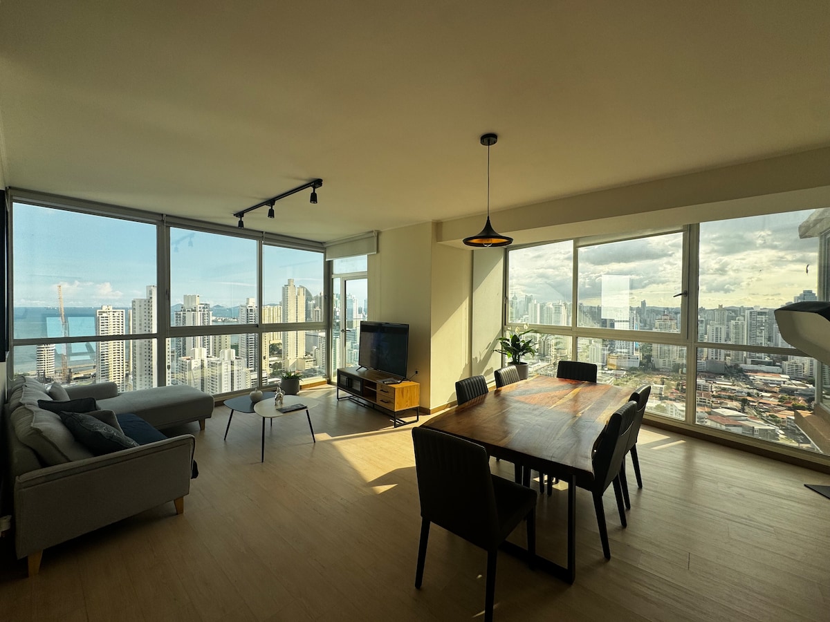 Cet endroit bénéficie d'un emplacement stratégique : il vous sera très facile de planifier votre visite ! Ph Yoo and Arts, situé sur l'Av. Balboa, super central Cette belle propriété moderne a un style unique et une vue incroyable sur la mer, appartement haut, 2 chambres, 2,5 salles de bains complètes, buanderie, grande terrasse, lumières réglables dans tout l'espace, salle à manger, salle de cinéma, espace de travail, 3 téléviseurs intelligents, 3 climatiseurs centraux, cuisine entièrement équipée, verrerie moderne.