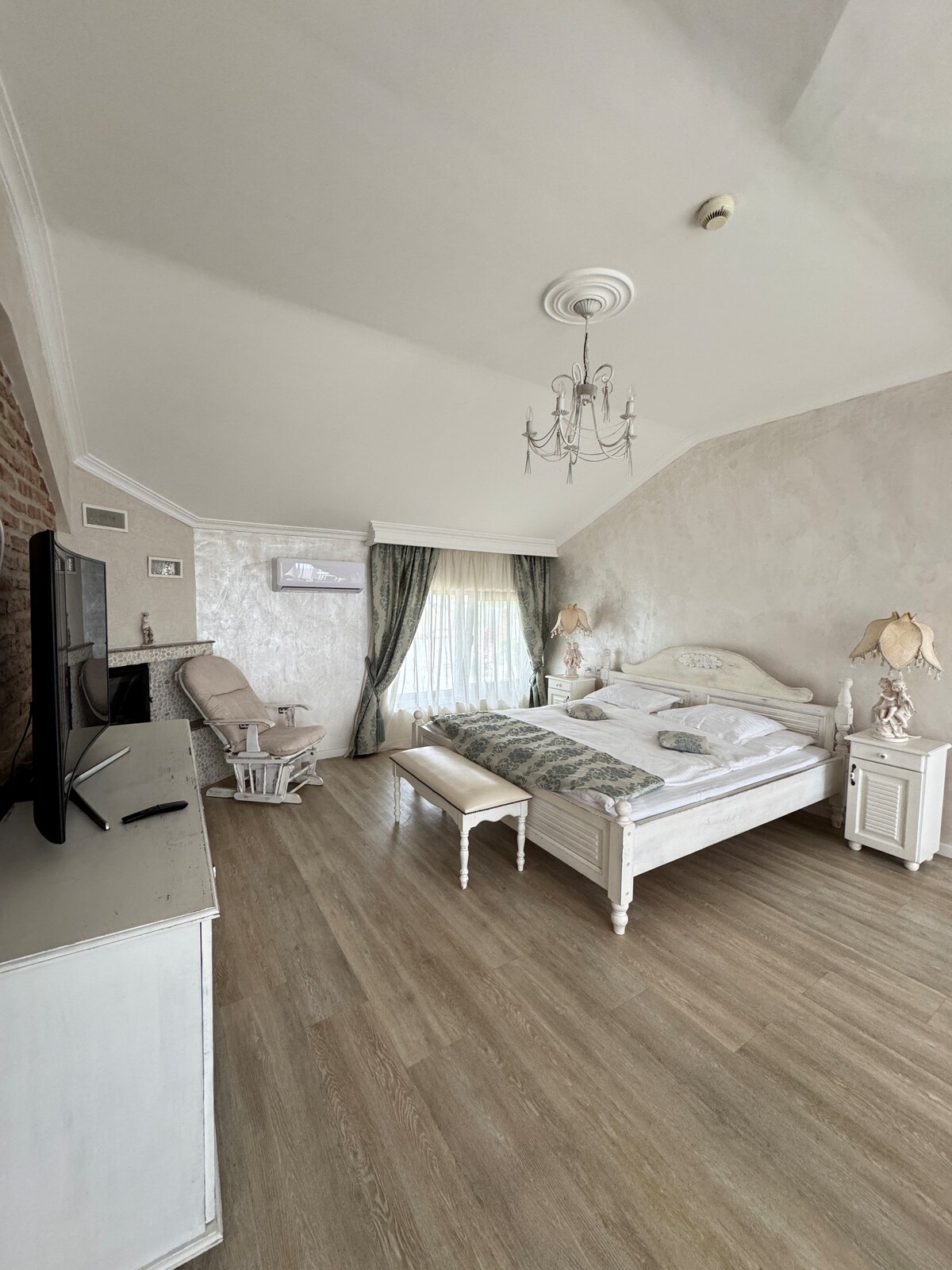 Confort et élégance au cœur de la nature, dans notre appartement de luxe dans le complexe exclusif Transylvanian Paradise. Idéal pour les couples, les petites familles ou les groupes jusqu'à 4 personnes, cet appartement offre une combinaison parfaite de raffinement et de détente. Chambre spacieuse avec lit king size haut de gamme, draps de qualité supérieure et décor classique, créée pour une nuit de sommeil reposante. Terrasse extérieure donnant sur la piscine. Salle de bain élégante avec finitions luxueuses, cabine de douche et baignoire.