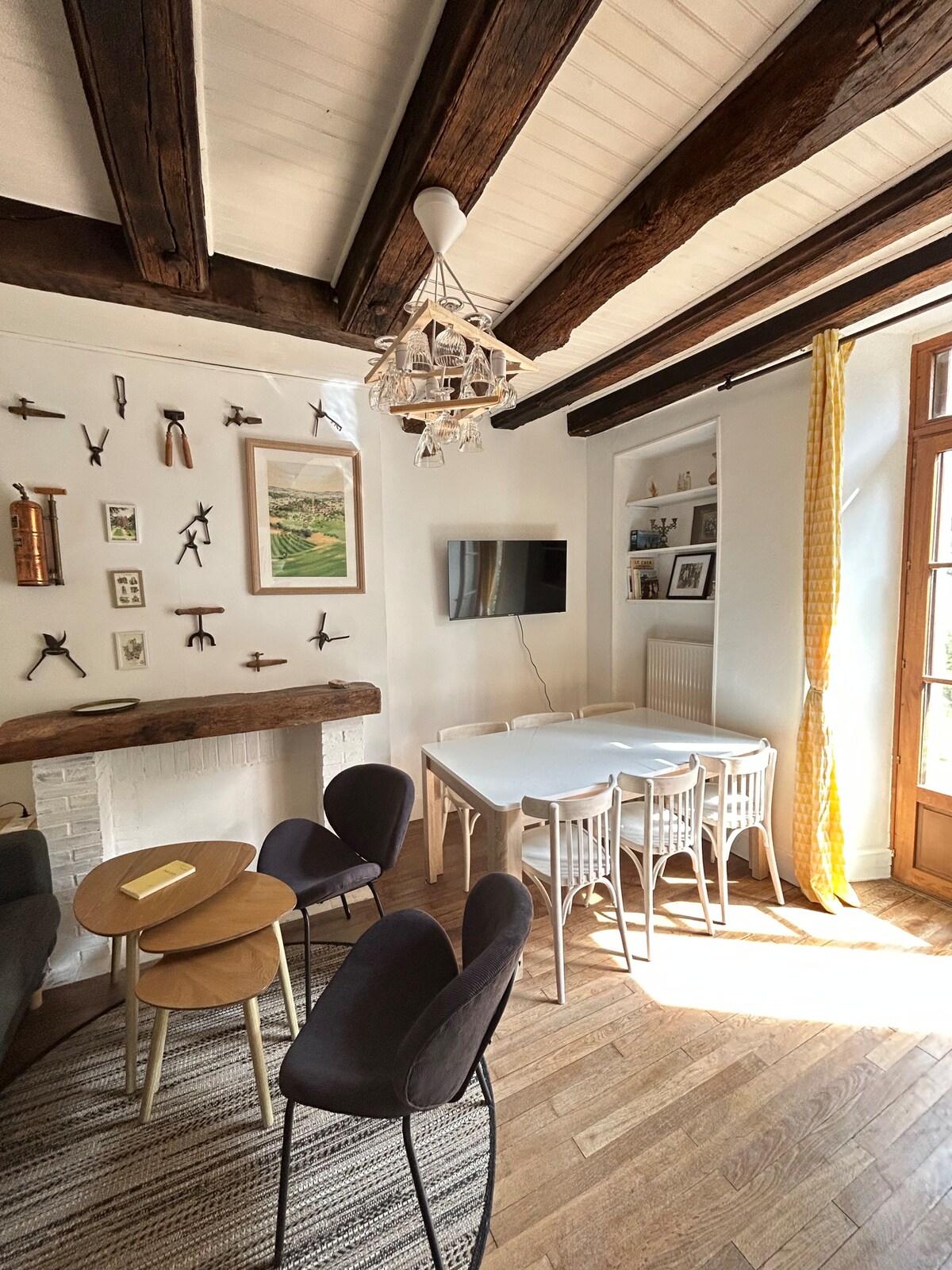 Maison entièrement rénovée pour 6 personnes, dans un village typique aux pieds de Sancerre. 3 chambres dont 2 chambres à l'étage avec une salle d'eau par étage. 1 wc au RDC, jardin avec vue sur le vignoble, salon d'été couvert, parking privé, tout confort dans un style campagne raffiné. Draps, serviettes de bain et torchons sont fournis. activités : oenotourisme (Sancerre, Pouilly...) golf de 18 trous, canoë, la Loire à vélo, St Fargeau (son et lumière), Guedelon, Briare, le Morvan et ses lacs