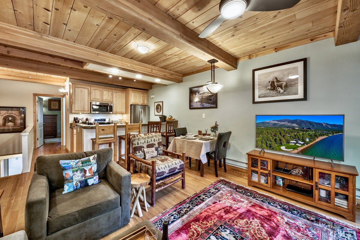 Ce charmant appartement est situé au centre, spacieux et une station de détente parfaite après une journée de plaisir au soleil du lac Tahoe ! Il dispose d'un salon et d'une salle à manger spacieux et ouverts au cœur du magnifique village d'Incline, à proximité des restaurants, des cafés et du centre commercial Raley's. Respirez l'air frais des montagnes sur la terrasse extérieure pendant que vous prenez votre tasse de café du matin ou votre cocktail au coucher du soleil. Il dispose d'une cuisine entièrement équipée pour tous vos besoins de cuisine. Les plages, la randonnée et le vélo sont à proximité !