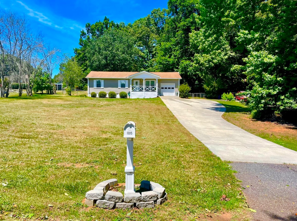 Pour votre prochaine escapade, évadez-vous dans notre chalet Pendleton. Situé à seulement 9 miles du Clemson 's Memorial Stadium et à seulement 6 miles de Garrison Arena, vous trouverez tout ce dont vous avez besoin dans notre maison loin de chez vous, y compris une cuisine complète, un salon avec une télévision 65", 3 chambres, chacune avec sa propre télévision 43", 2 salles de bains, une immense cour arrière entièrement clôturée, une buanderie complète et bien plus encore.