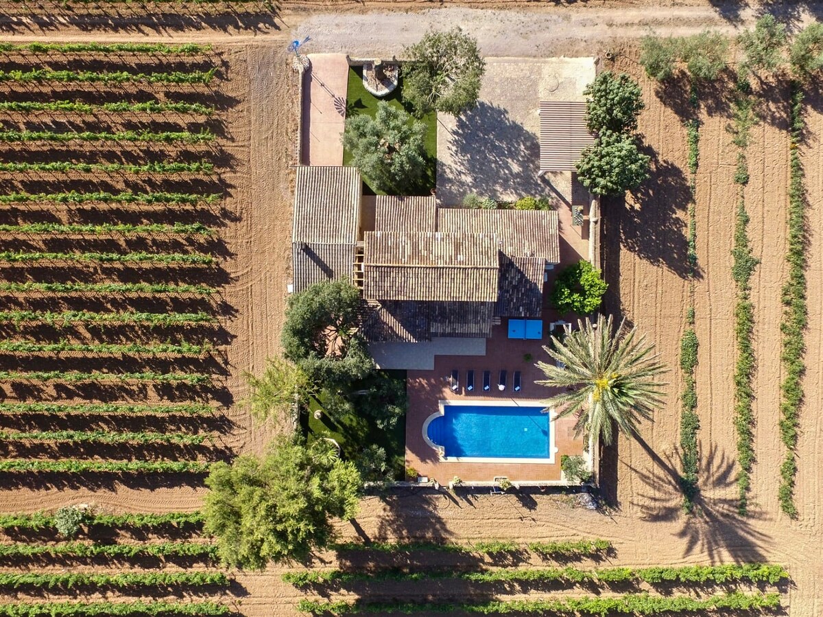 Sur ce domaine champêtre, dédié à la production d'amandes écologiques, et à la livrée des chevaux, vous trouverez un exquis appartement de luxe avec piscine privée, jardin et détente. Idéal pour se détendre et écouter la nature.