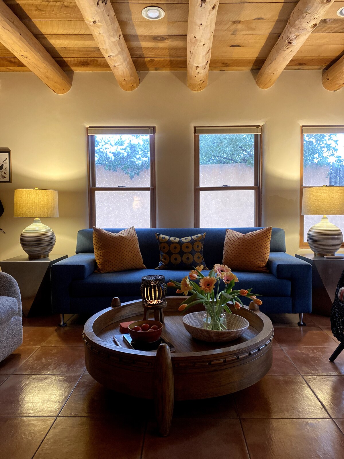 Notre appartement rénové est dans un quartier résidentiel calme accessible à pied pour la plupart de Santa Fe ! Idéalement situé à moins d'un mile des boutiques/restaurants/galeries de The Plaza, Canyon Rd et The Railyard. 76 Walk score (très accessible à pied). Décoré dans un style Santa Fe contemporain, notre appartement a tout le charme classique de l'adobe (cheminée kiva, sols en briques, plafonds à poutres apparentes) mais dans un style propre et épuré. Tous les appareils de cuisine ont été remplacés par des modèles en acier inoxydable en 2022. Profitez-en !