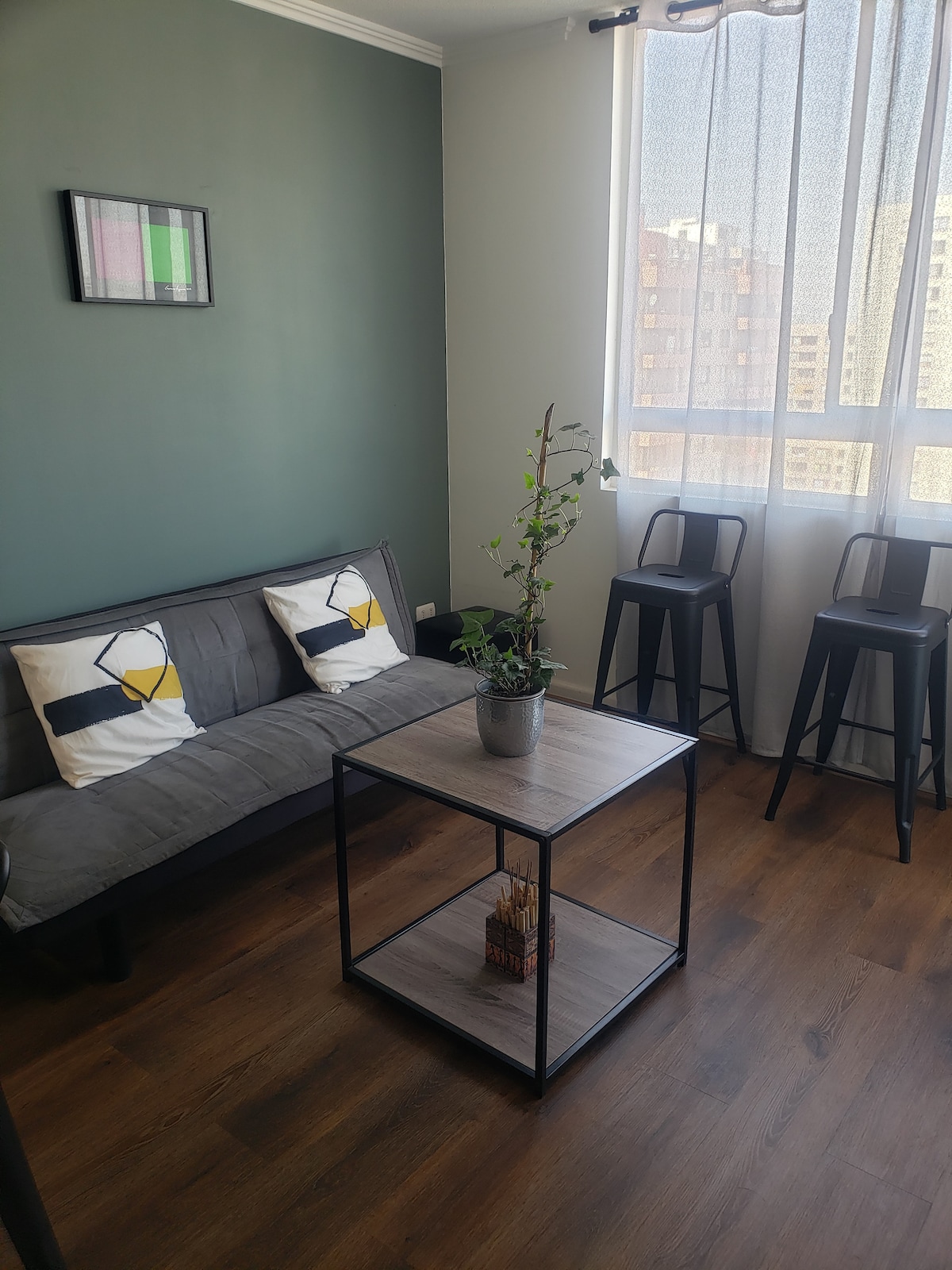 🌿 Disfruta una estadía con estilo en el corazón de Santiago. 🏡 auto Check-in 24/7 ✨ Refugio nórdico-boho con luz natural y detalles de madera. 🛏 Cama king de ensueño y sofá cama y balcón ideal para un café o vino al atardecer Ropa de cama y toallas ❄️ Aire acondicionado, calefacción Wi -Fi rápido 🧑🍳cocina equipada 🧴 lavadora y secadora privada 🛌 cortina blackout en dormitorio 🚇 A pasos del metro Santa Lucía, cafés, restaurantes y parques 🅿️ Estacionamiento gratis sujeto a consulta