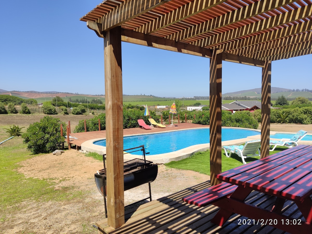 parcela de agrado, gran piscina privada, lugar especial para relajarse y pasar unos gratos días en familia, además posee cabaña aislada para 3 personas con baño privado y kitchenet.
