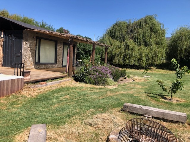 Disfruta de los sonidos de la naturaleza cuando te quedes en este lugar único. El espacio es especial para desconectarte de la rutina y conectar con la naturaleza, por las mañanas te visitarán variedad de aves y por las noches los conejitos salen a jugar. Casa en contenedor cuenta con dos dormitorios equipados con cama de calidad DRIMKIP. Quincho, fogón, tinaja privada de agua caliente al aire libre y gran terraza. El costo de la leña viene incluido para dos dias en la tarifa de aseo.