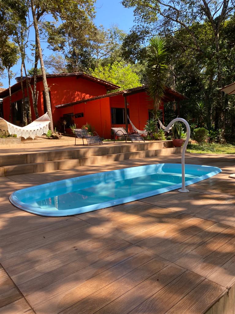 Logement privé situé à Cond. Quintas do Rio das Águas Claras - Brumadinho, à 15 minutes de l'INHOTIM. >Hébergements : 5 Suites/dortoir (lits : 7 lits doubles 2 lits superposés 1 lit double), salon/chambre, 5 salles de bains, espace gastronomique, ustensiles, barbecue, cuisinière à bois et à gaz, congélateur, filtre, sons, tables, parking. >Loisirs : piscine avec cascade, piscine, geek, terrain avec un petit but et un filet de volley-ball/peteka, aire de jeux, sauts, espace enfants, hamacs sur la pergola, 2 téléviseurs, wifi.