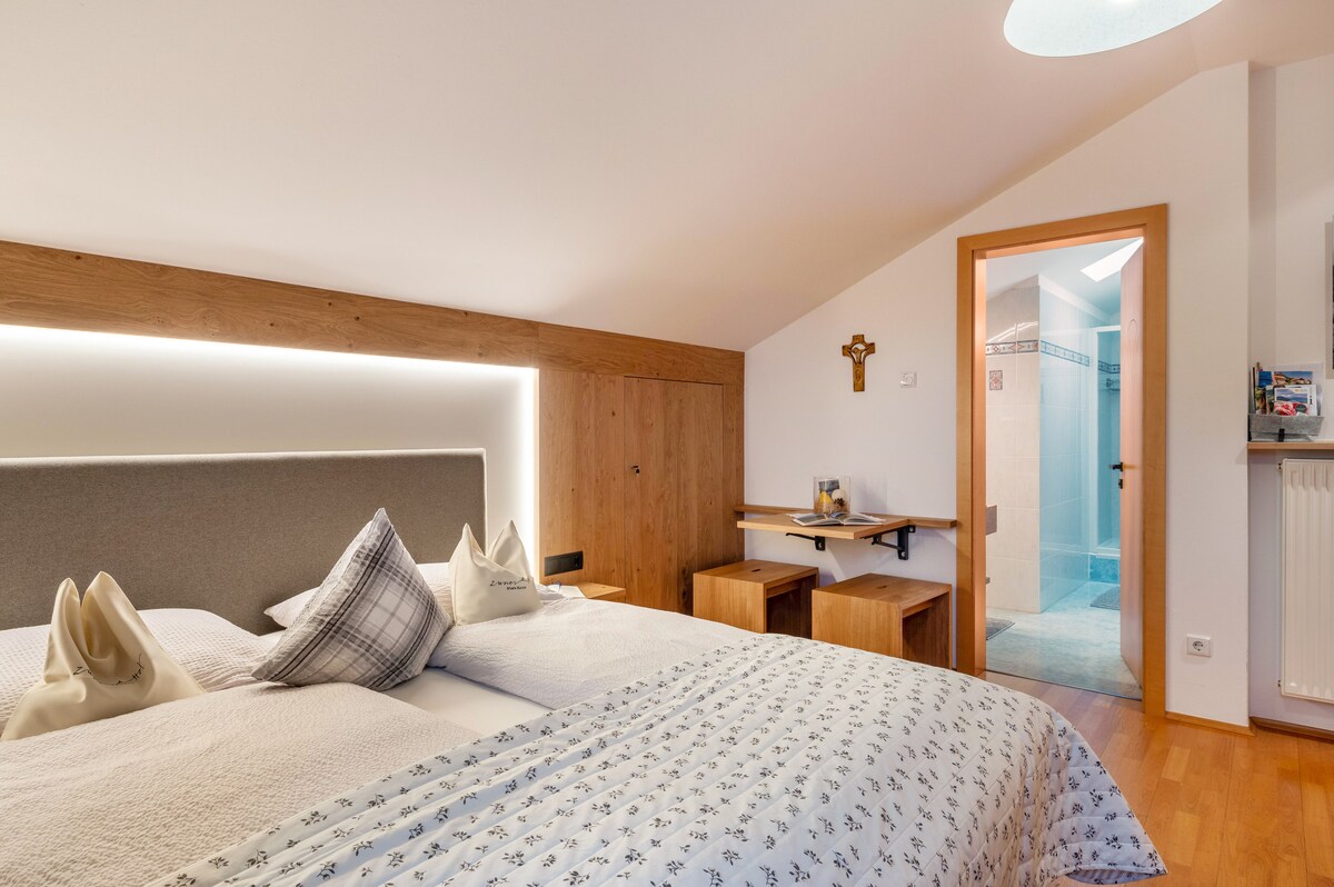 L'un de nos cinq appartements délicatement rénovés situé au deuxième étage d'une charmante ferme de caractère. C'est l'un des plus anciens bâtiments d'un charmant petit village du Valle d'Isarco, dans le nord de l'Italie. Nous nous trouvons en plein centre du Tyrol du Sud baigné de soleil, sur une colline à l'entrée des vallées de Gardena et Funes. Proche des montagnes des Dolomites mais non loin des villes populaires de Bolzano et Bressanone, c'est un point de départ idéal pour explorer la région.