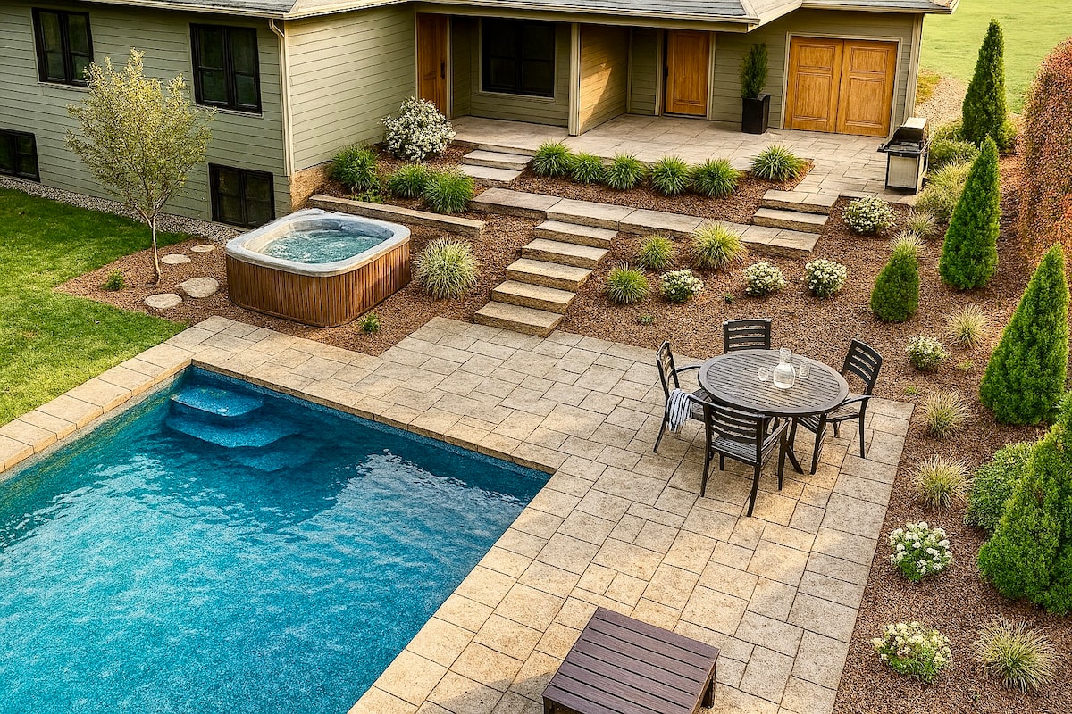 Nouvelle maison d'art près du lac Michigan, jardin et patio