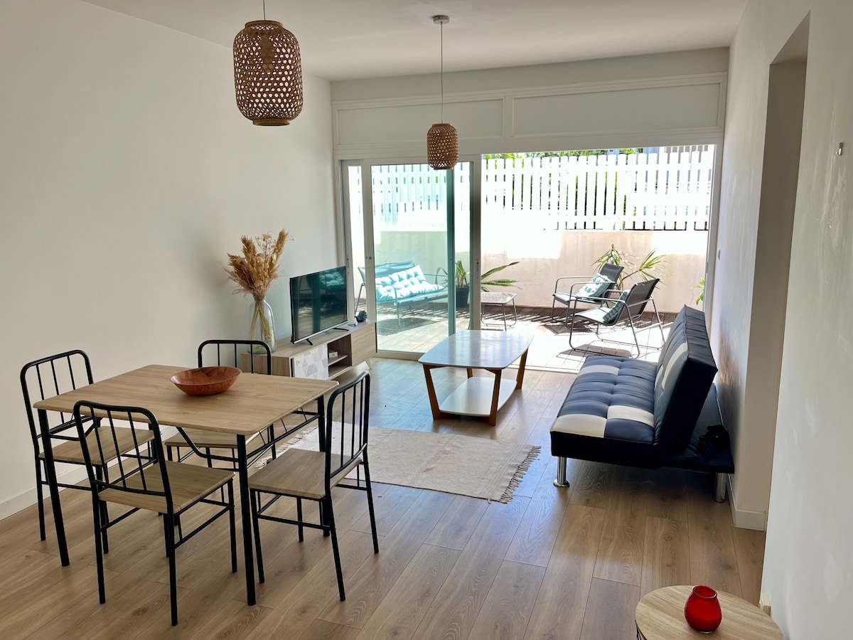 Situé à 50 m du supermarché Auchan. Immeuble sécurisé avec ascenseur. Logement climatisé +brasseur d'air. Internet WIFI avec la fibre. Petit balcon avec volet, étendoir extérieur. Bouilloire électrique, Toaster, Micro onde, Lave Linge, Frigo+congélateur. Proche taxis, bus et départ du Ferry Bético. Proche boulangerie, pâtisseries et restaurants. Je met à disposition une serviette de bain par personne, je fournis les draps, 2 oreillers, quelques savons et du papier toilette pour quelques jours.
