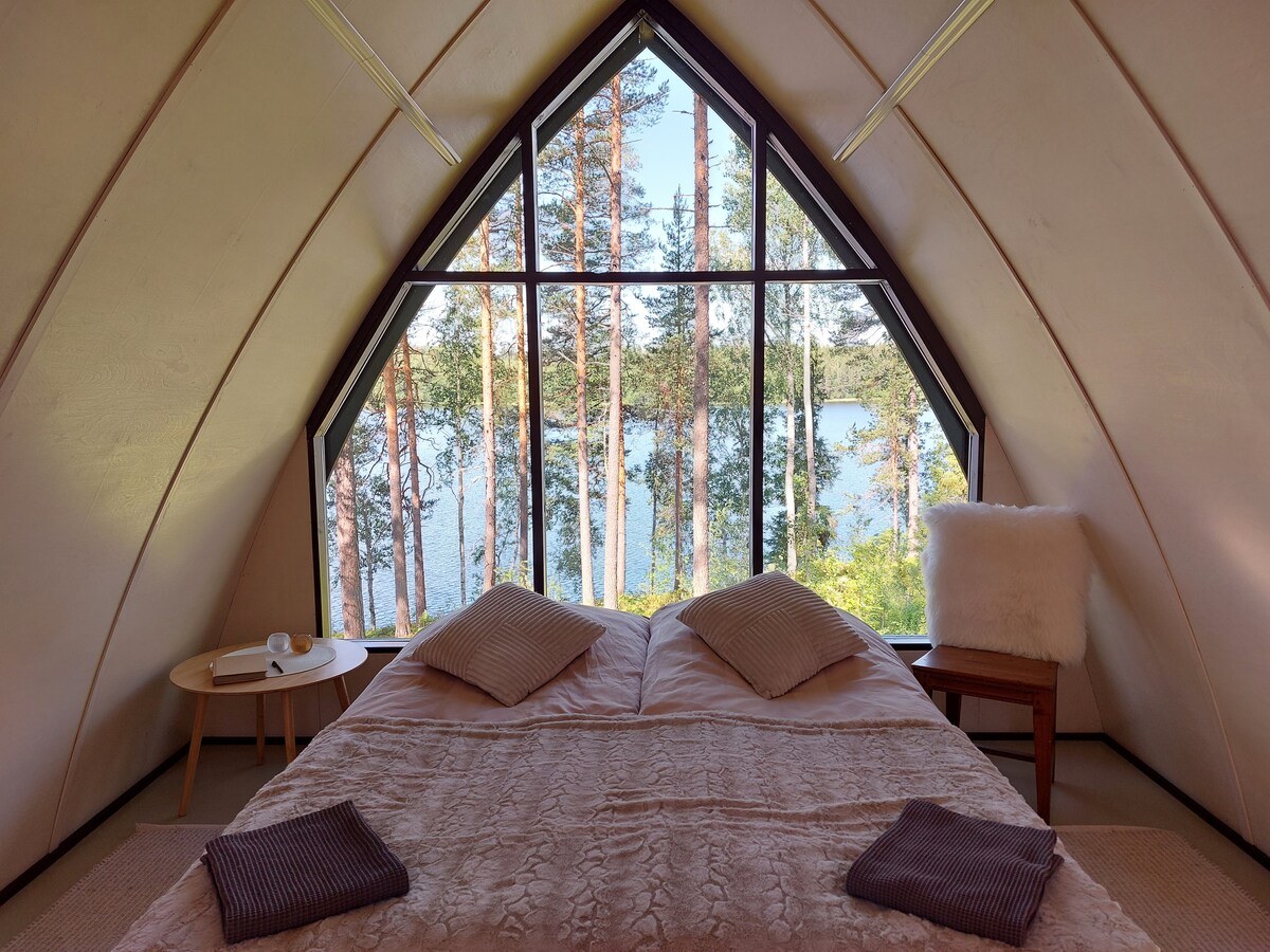 Comment se sentirait-il d'observer le coucher du soleil et le ciel étoilé depuis l'igloo en verre exotique ? L'igloo est équipé de vacances atmosphériques pour deux personnes. Le rôle principal offre une superbe vue sur le lac du sol au plafond. Le chalet de sauna atmosphérique (25 m2) a de l'électricité et de l'eau, et a été rénové d'un étage au plafond. Le chalet dispose d'un chalet, d'une alcôve, d'une cheminée, de toilettes, d'un sauna en bois et d'une douche. Il y a une cuisine d'été couverte et un barbecue dans la cour, entre autres choses.