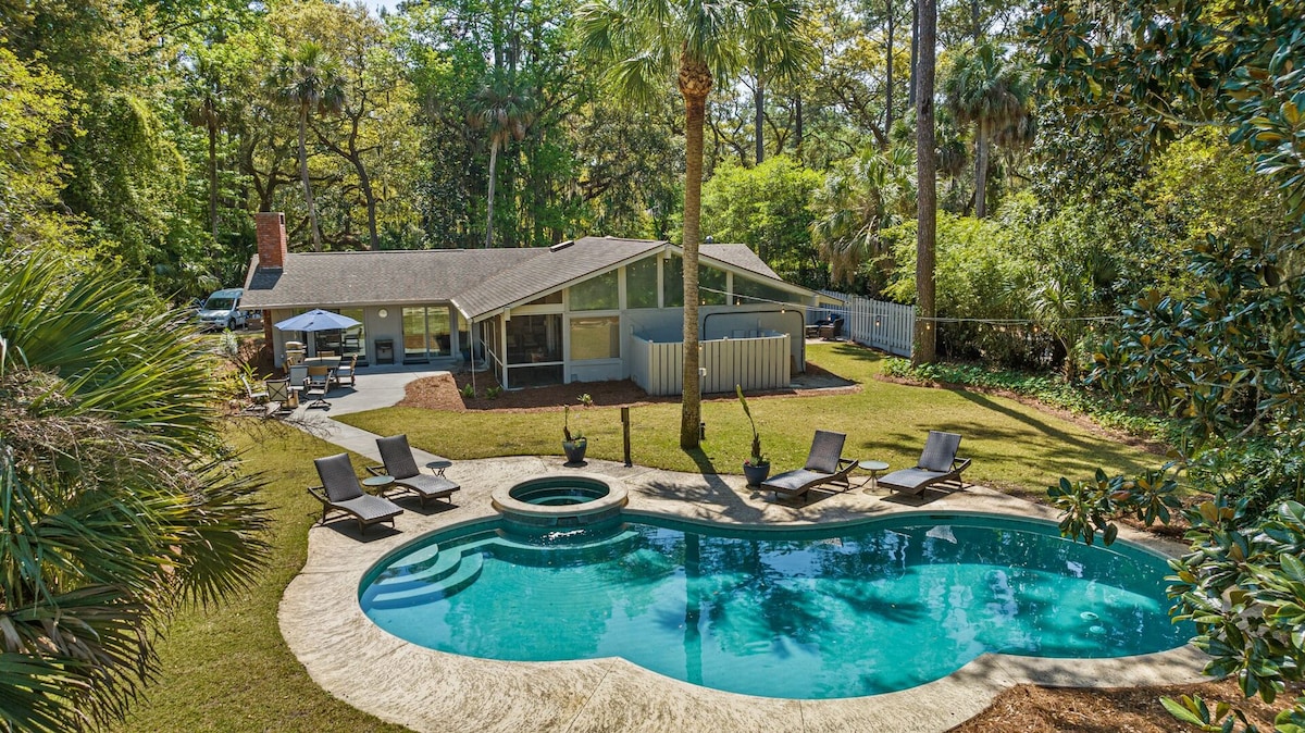 Cette belle maison de 3 à 4 chambres dispose de sa propre piscine privée et d'un petit chemin tranquille menant à une section semi-privée de la célèbre plage de sable blanc de Hilton Head. Profitez de la belle terrasse extérieure pour vous détendre ou recevoir. Le plan d'étage ouvert, la cuisine entièrement équipée et les mises à jour de bon goût rendent cette propriété idéale pour des vacances en famille ou des voyages entre amis. Les tout nouveaux planchers de bois franc en font un refuge idéal pour les animaux de compagnie.