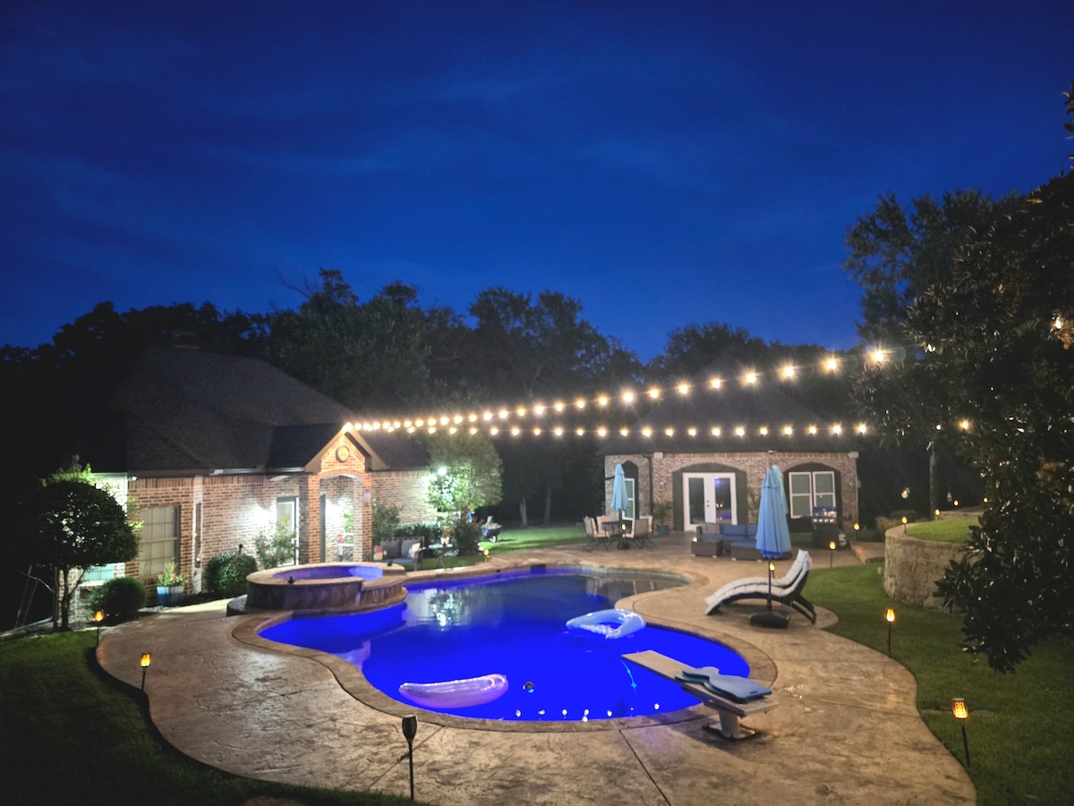 *INTERDICTION DE FÊTES ou d'ÉVÉNEMENTS** Détendez-vous dans cette maison d'hôtes de campagne exquise et tranquille avec piscine et jacuzzi, à seulement 25 miles du centre-ville de Dallas. Pour ceux qui aiment le plein air, cette maison d'hôtes a accès à une cour arrière magnifiquement aménagée avec une piscine et un jacuzzi à quelques pas de votre porte.