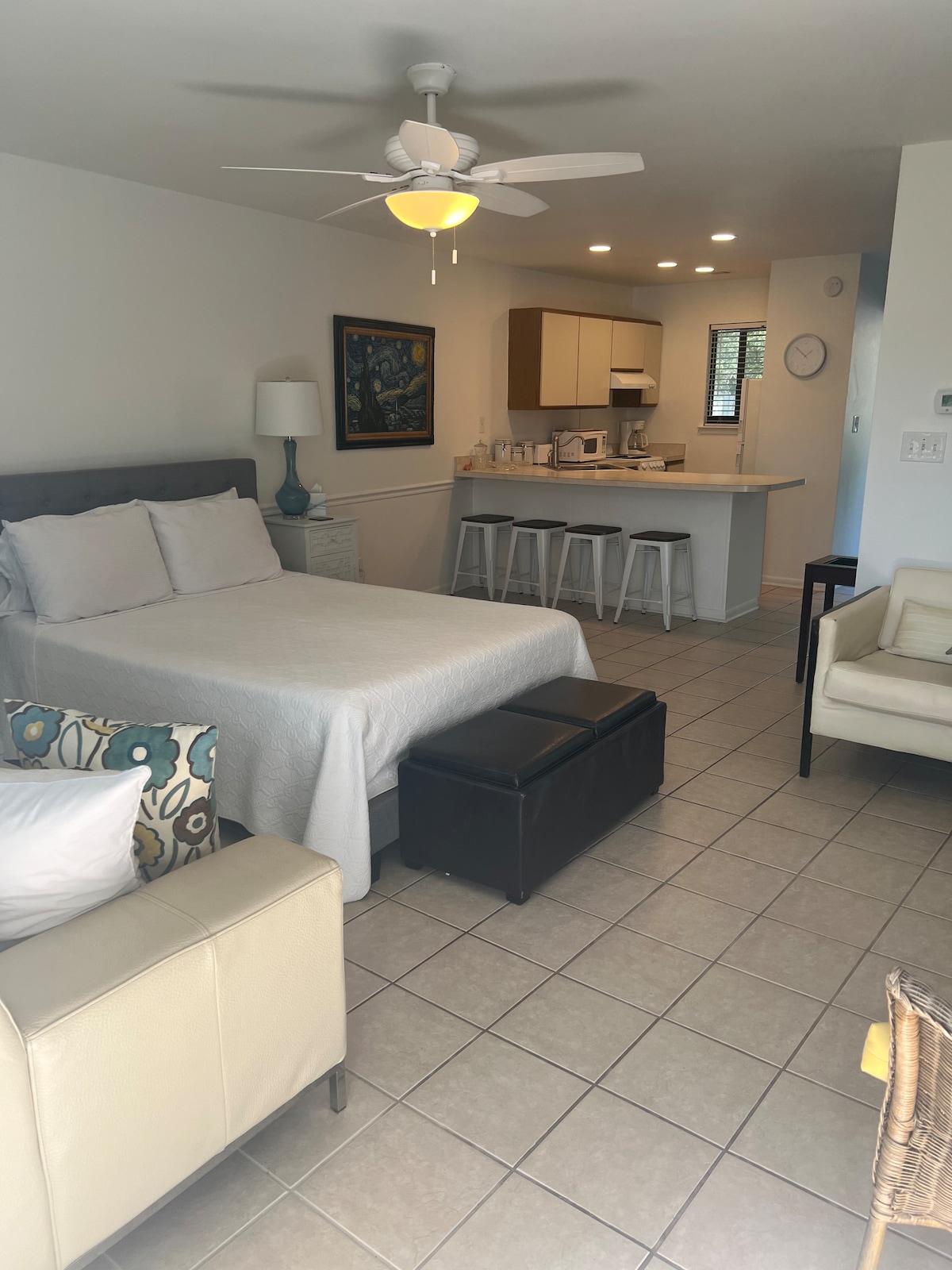 3 minutes à pied de la plage~À distance de marche des restaurants~ 5 minutes à vélo/voiturette de golf jusqu'au bord de la MER~ 2 piscines~ 2 chaises de plage ~ 2 serviettes de plage ~2 vélos gratuits fournis Bienvenue à Beachwood Villas ! ! Il s'agit d'un appartement 1BR/1BA qui a été entièrement rénové ! Profitez de votre café sur le balcon spacieux, qui offre une vue paisible sur la cour du complexe et se trouve à côté de l'une des deux piscines du terrain (une piscine est chauffée de mars à avril). Nous fournissons également 2 serviettes de plage pour vos