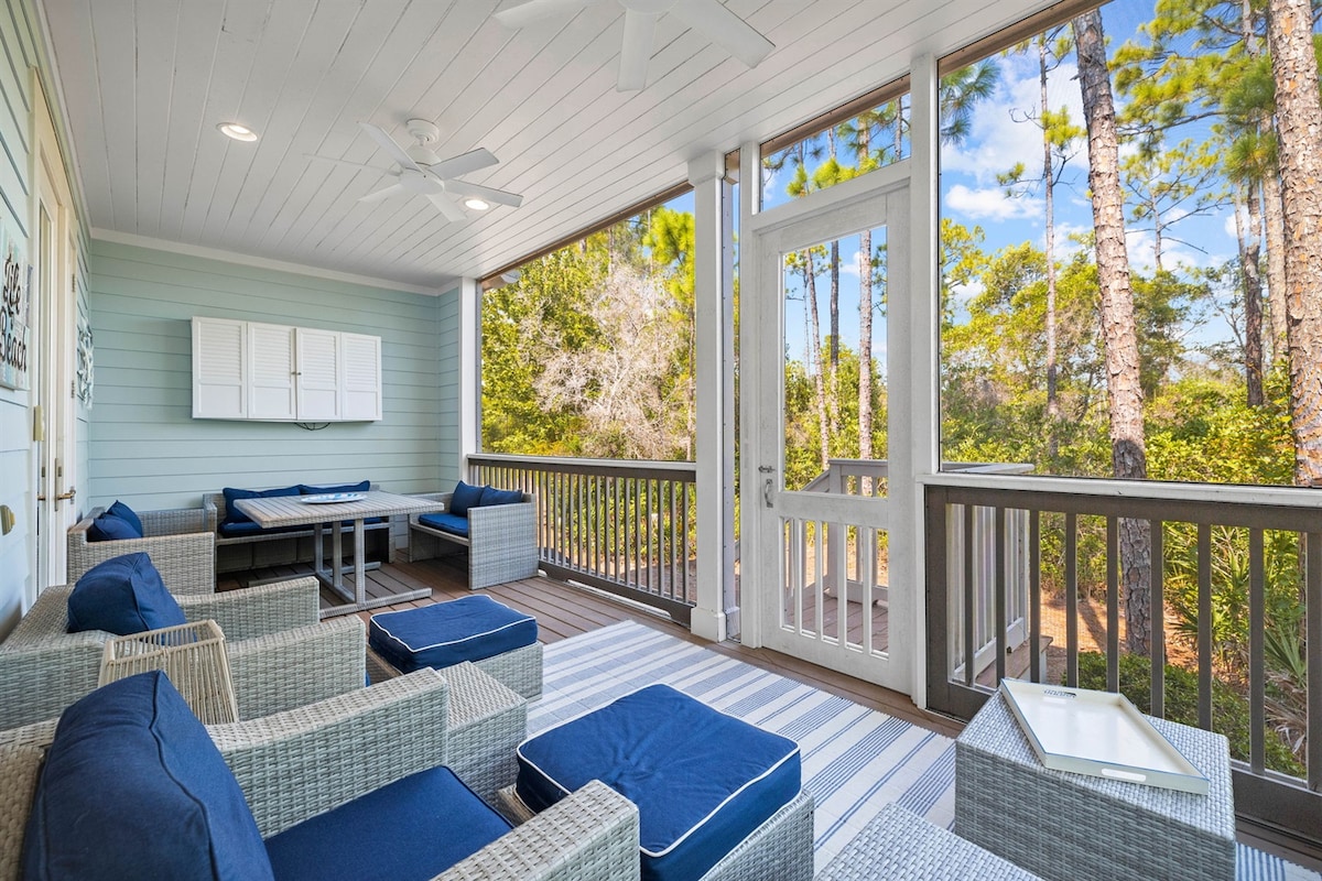 Nous pensons que vous aimerez cet espace confortable autant que nous. Marchez vers le sud dans notre rue et vous traverserez la 30A, puis courrez directement dans l'accès à la plage de San Juan. Marchez vers le nord et il y a d'autres aventures, des sentiers et la belle forêt d'État de Point Washington. Si vous cherchez plus d'action, vous pouvez faire du vélo jusqu'à Seaside en 15 minutes ou moins !