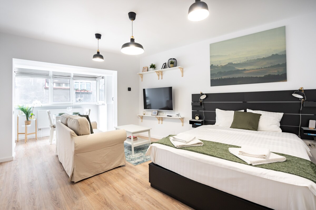 Bel appartement studio dans le centre-ville de Bucarest, à seulement 5 minutes à pied de la place de l'Université ou de la vieille ville. Le studio est entièrement meublé et dispose d'une cuisine entièrement équipée. Le coin nuit dispose d'un lit Queen Size et d'un grand dressing, tandis que le coin jour dispose d'un canapé confortable, d'une télévision connectée grand écran et d'une belle table à manger. Immeuble solide des années 80, situé dans une rue secondaire, assure un séjour au calme, ajoutant à votre confort et bonne nuit de sommeil. Réservez maintenant et profitez-en !