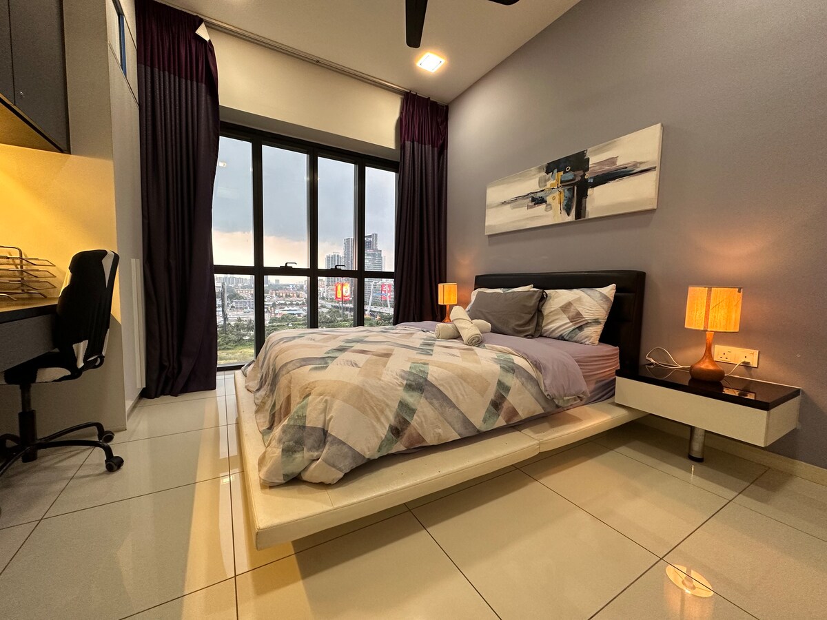 Notre logement est adapté à la famille, aux amis et aux travailleurs. Wifi et parking gratuit fournis. Aircond dans le salon, la chambre principale et la chambre moyenne. Ventilateur dans la 3ème chambre. Centre commercial en dessous de la copropriété. McDonalds, Burger King, Korean CU Store, 7-11, Western & Local Restaurants, Watsons, ATM, Cinema sont disponibles. Aeon Mall et The Mines Shopping sont à 5 km. Appartement élégant et moderne pour les familles, les amis qui se réunissent, les travailleurs. Nous disposons d'Internet et d'un parking gratuit. Dans le salon, il y a la climatisation dans la chambre principale et la deuxième chambre, et il y a un ventilateur dans trois chambres. Il y a des fast-foods, des dépanneurs, des restaurants, des distributeurs automatiques de billets, un cinéma en bas de l'appartement. Vous y trouverez également le centre commercial Aeon et The Mines à proximité de l'appartement