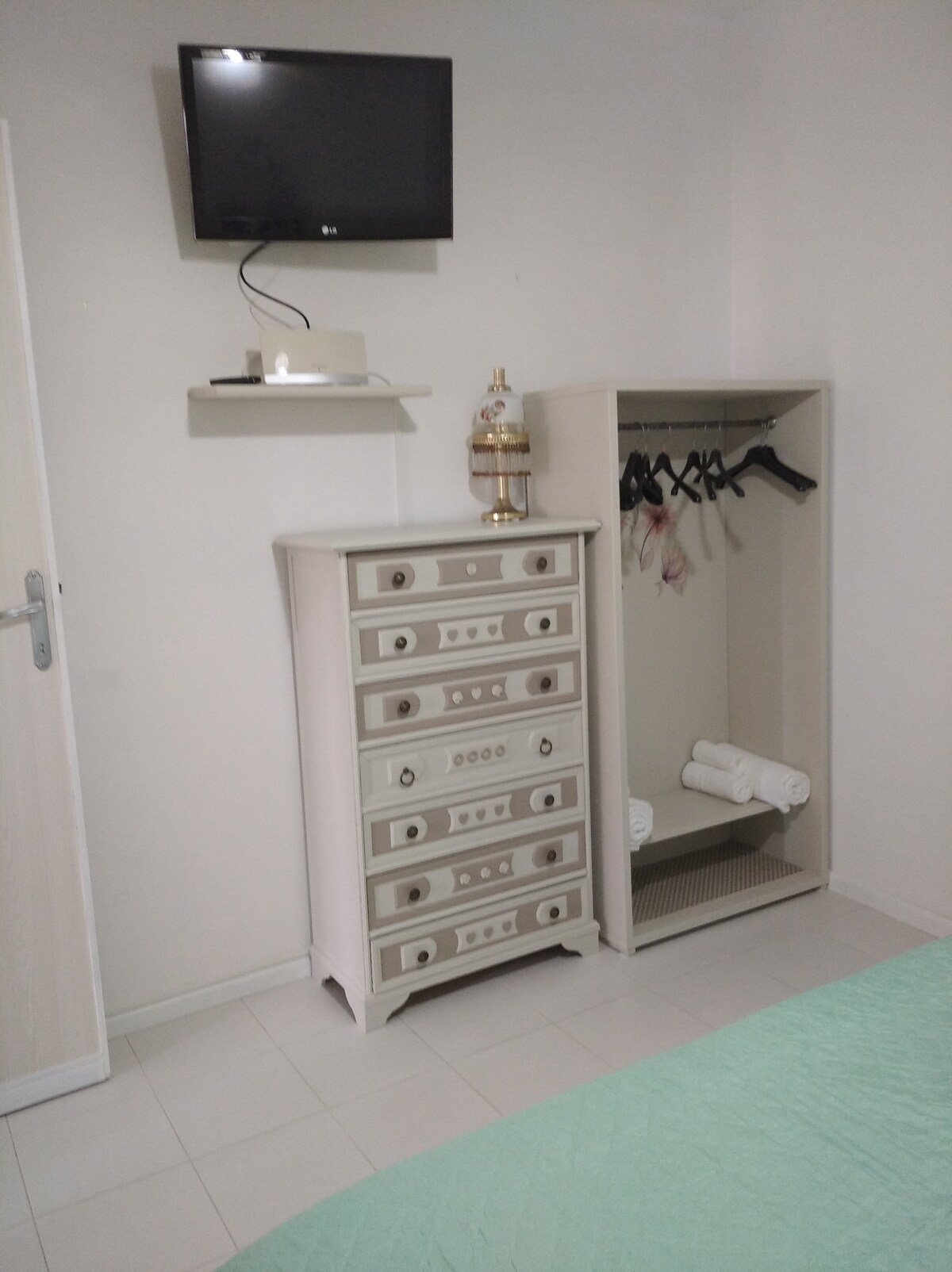 Lumineux et spacieux trois pièces au deuxième étage.Rénové et meublé à nouveau.Vue panoramique.2chambres : 1 double et 1 avec canapé-lit d’une place et demie avec matelas très confortable,1 salle de bain avec cabine de douche chromothérapie.Séjour avec kitchenette adaptée à tous les appareils nécessaires.Machine à café.Grande véranda panoramique pour pouvoir déjeuner à l’extérieur.Lave-linge.Coffre-fort.La maison est équipée de la climatisation.Il y a toujours un parking en face de la maison.Draps,serviettes,nettoyage final inclus.