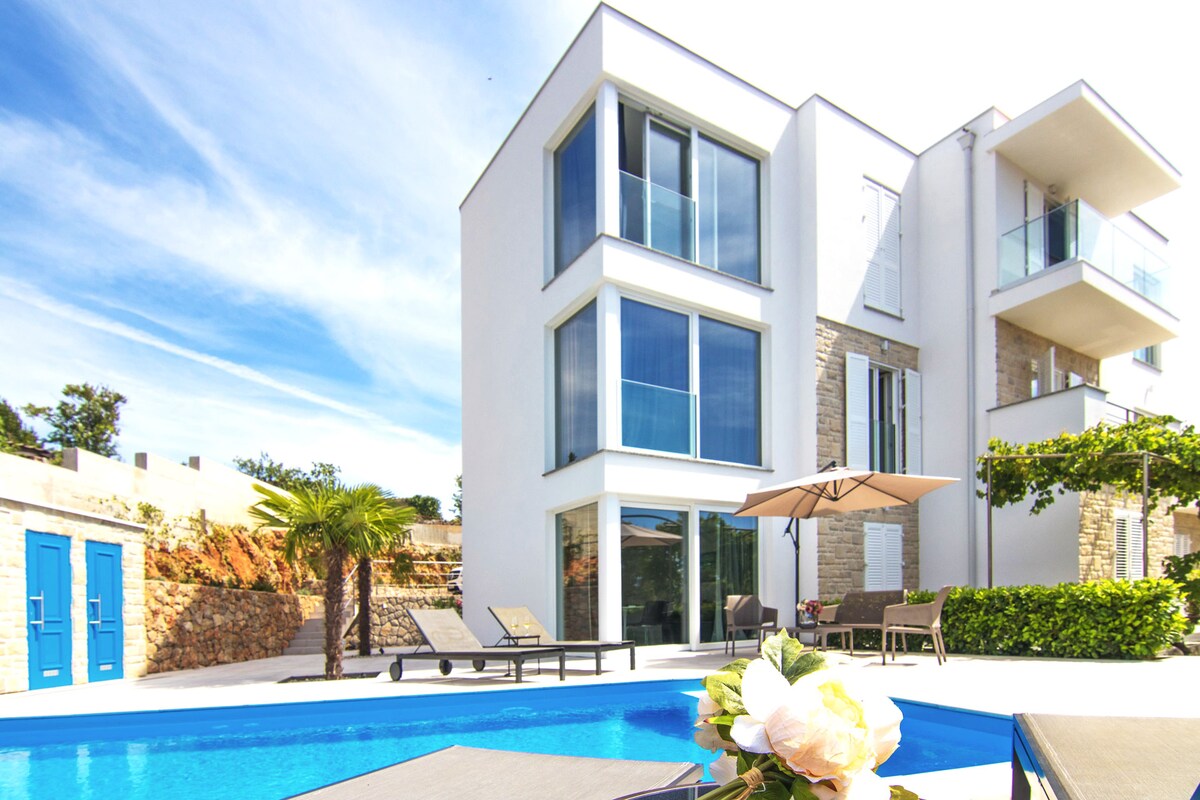 Villa Marina Portapisana, une maison d'été exclusivement conçue avec 3 appartements de luxe, située sur une falaise au-dessus de la baie de Portapisana de la ville de Krk surplombant la vieille ville. La plage est à 50 mètres ! Appartement 5* pour deux, 1 chambre queen size avec salle de bain, salle de bain supplémentaire, cuisine, salle à manger, grande terrasse, 60 m² Détendez-vous sur une chaise longue et plongez dans la piscine avec paix et tranquillité autour de vous !