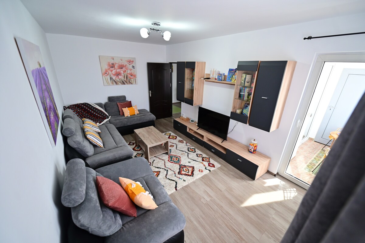 Détendez-vous en famille dans ce logement paisible. Vue imprenable du balcon en direction des Carpates. À proximité du centre commercial, des épiceries et du marché Rahova. Accès facile au centre-ville et au parc Sub Arini. Emplacement idéal pour un week-end à Sibiu.