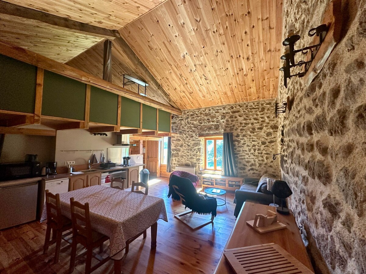 Ancienne ferme insolite du 18ème siècle, entièrement rénovée avec des matériaux écologiques. Cette bâtisse est située en plein cœur du massif du Mezenc-Gerbier de Jonc. Accrochée à un rocher volcanique, la maison abrite une grotte confortablement aménagée, dans laquelle vous pourrez vous détendre et profiter d'une vue superbe sur les sucs, les vallées Ardéchoises et les Alpes ! A 8min de la station de ski des Estables (43- Haute-Loire). Situation Exceptionnelle !