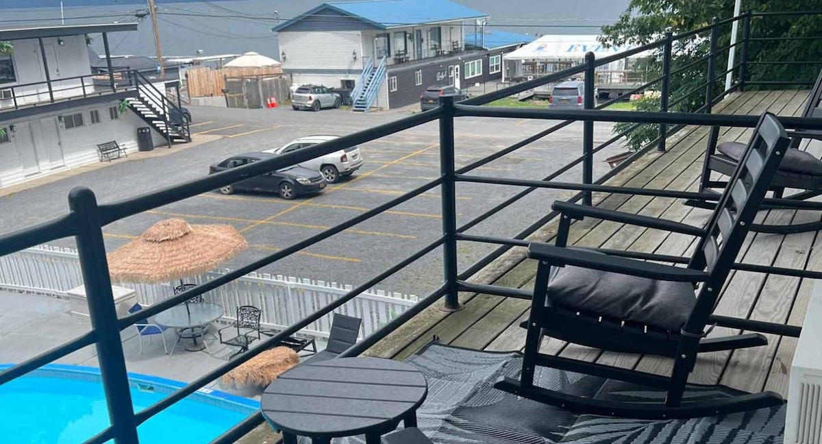 Our Poolside rooms provide you with privacy and the convenience of a pool at your front door. The balconies allow you to relax and enjoy the quiet sounds of nature with a view of Seneca Lake and the pool. Relaxation, modern convenience and our on-site bar and restaurant make Showboat Hotel the best Resort in the Finger Lakes Region.