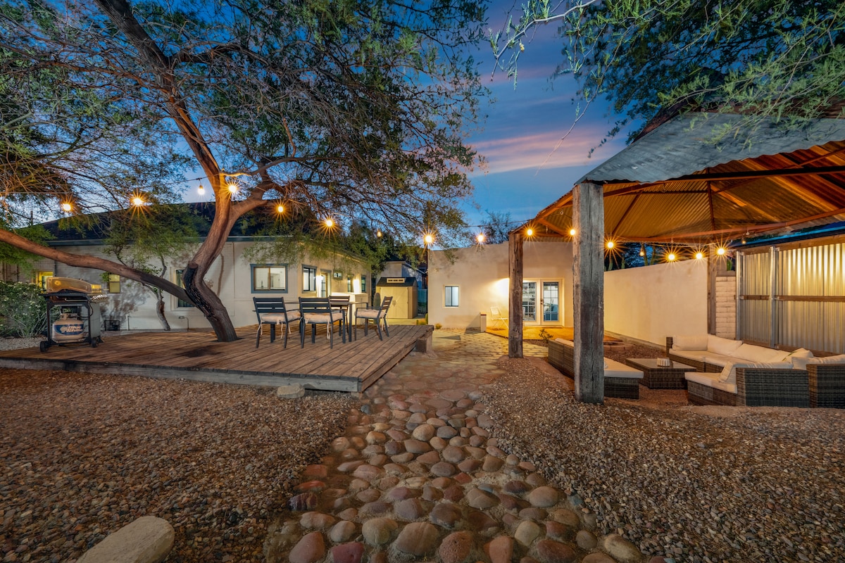 Stunning Studio Casita! Custom New build with an Open floor plan, Bright and cozy and in a wonderful, walkable, Downtown Tucson Neighborhood. Walking distance to A Mountain, Annex, Mercado San Agustin, Streetcar, The Loop bike path, UofA Campus 2.5 miles, Art & Music venues, Saguaro National Park, Restaurants and Nightlife. -Tile floors -Cathedral ceilings with Beams -Luxurious Kitchen with Quartz countertops -A/C - Queen size bed - Smart TV - WIFI -Washer/Dryer -Enclosed yard -Pet Friendly