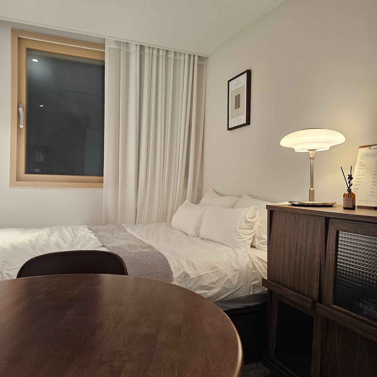 stay Amsa # Amsa Station 2 minutes # Lotte Tower # Asan Hospital # KSPO # Gangnam # Lotte World # Airport pick-up hotel bed bedding