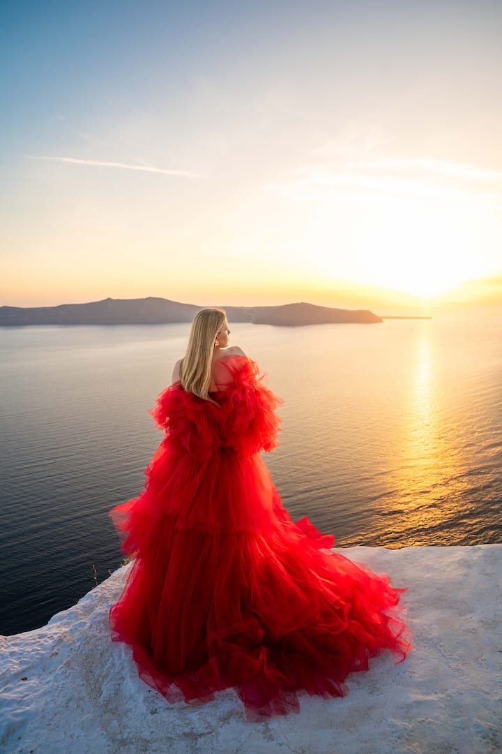 Profitez d'une séance photo en robe légère avec une équipe professionnelle de plus de 15 ans d'expérience. Nous vous photographierons dans les plus beaux endroits de Santorin, avec au moins 3 vues imprenables pour des résultats parfaits.