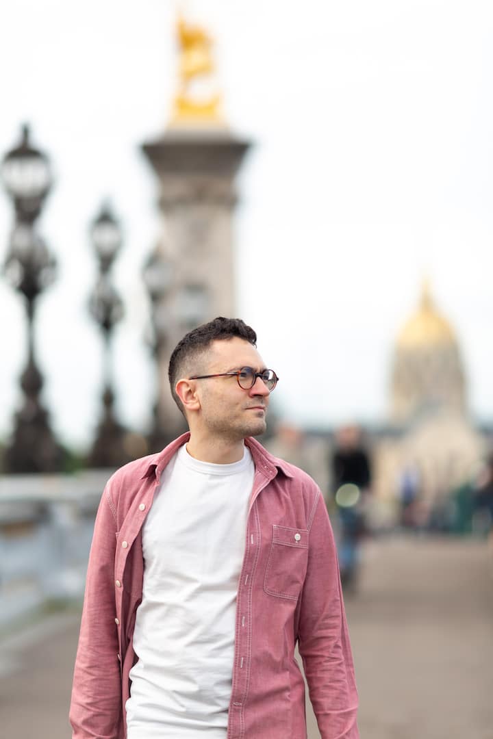 Je propose des séances photo au Pont Alexandre III et accueille à la fois de nouveaux clients et des clients récurrents.