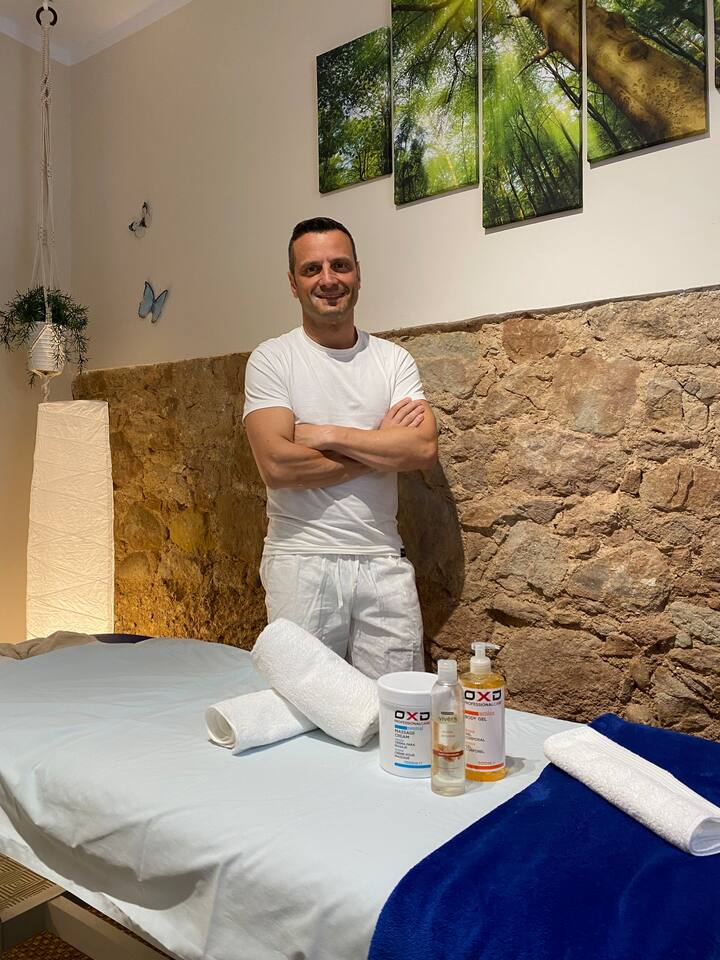Professionnel diplômé en chiromassage, massage sportif et massage thérapeutique, prêt à vous aider à vous sentir bien dans votre Airbnb.