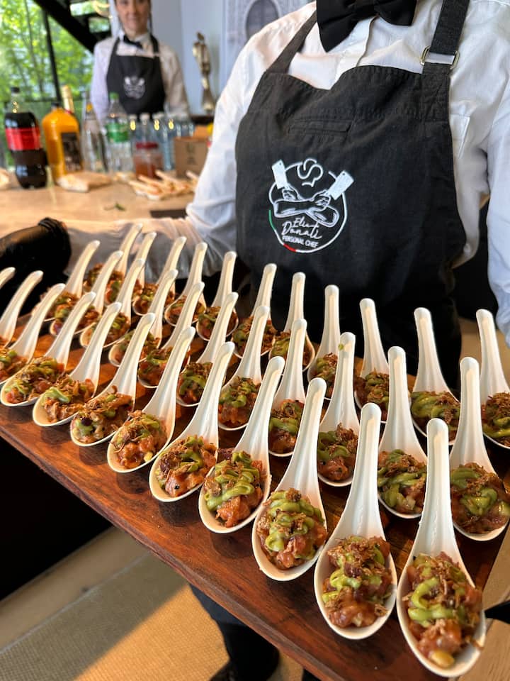 Idéal pour une fête, ce menu propose une sélection de créations élégantes et de la taille d'une bouchée. Les voyageurs peuvent déguster 8 canapés par personne, ce qui permet de faire circuler l'énergie sans les tracas d'un repas formel. Un service complet, du shopping au nettoyage, est inclus.