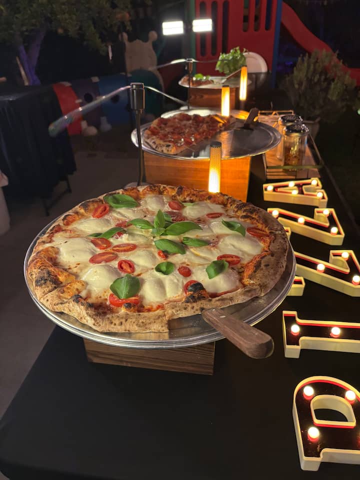 Ce menu dégustation élégant de 3 plats réinventé à travers le feu et la pâte commence par 2 pizzas raffinées et fraîches du jardin pour nettoyer le palais. Elle se poursuit avec 2 spécialités gourmandes, riches et inoubliables. Deux pizzas dessert artisanales clôturent la soirée en beauté. Ce voyage culinaire organisé de 6 pizzas extra-larges de 16 pouces est préparé sur place.