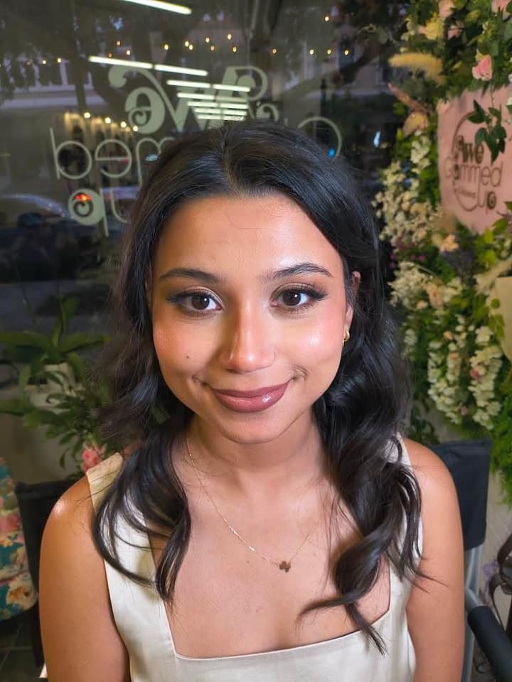Cette séance comprend l'application traditionnelle du fond de teint et du mascara pour un look soigné et harmonieux qui met en valeur les traits naturels.