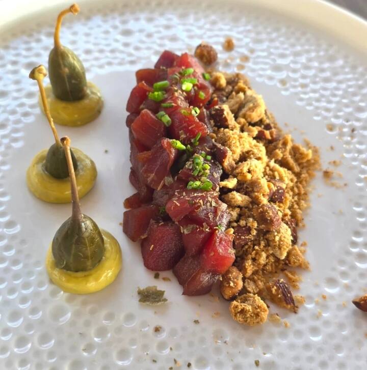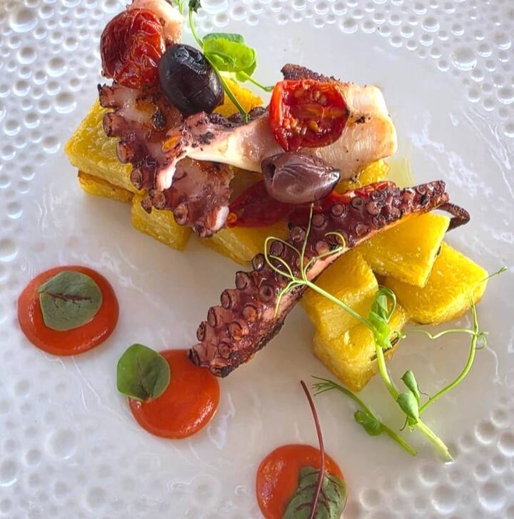 Un voyage culinaire méditerranéen avec 3 hors-d’œuvre sélectionnés parmi le poulpe, la morue et le tartare de thon. Ensuite, 3 premiers plats riches en saveurs comme les paccheri avec la lotte, l'amatriciana de thon et le fusillo nerano. Pour le deuxième, choisissez entre la morue, la sériole ou l'espadon, et terminez avec la caprese décomposée.