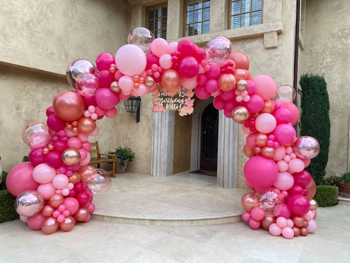 Notre guirlande de ballons peut être installée presque n'importe où et personnalisée dans n'importe quelle taille. Nous proposons 50 modèles de ballons et une variété de couleurs. Contactez-nous pour découvrir nos offres pour votre prochain événement.