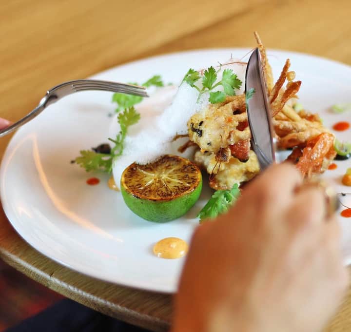 Savourez une sélection variée de plats d'inspiration méditerranéenne, avec une gamme complète d'entrées allant des calamars croustillants à la terrine de foie gras. Savourez un premier plat raffiné avec du tartare de bœuf vieilli, suivi de plats principaux comme le risotto à la betterave et le steak et le homard. Terminez avec des desserts exquis, notamment une tarte au chocolat noir et une meringue au fruit de la passion.