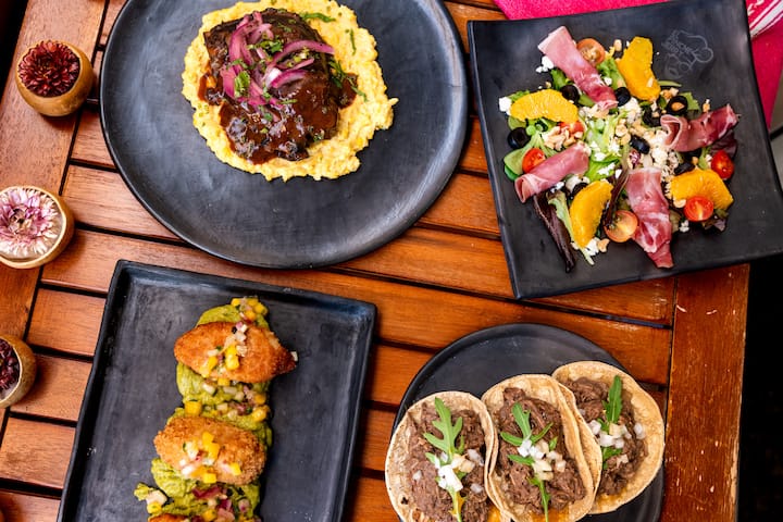 Cette option a pour objectif de dresser une table pleine de couleurs et de saveurs, où deux gastronomies se rencontrent et qui comprend des petites bouchées, des tortillas moelleuses, des sauces maison et des produits locaux frais, le tout combiné pour offrir un festin riche en contrastes. La dégustation comprend l’achat, la préparation, la présentation et le service.